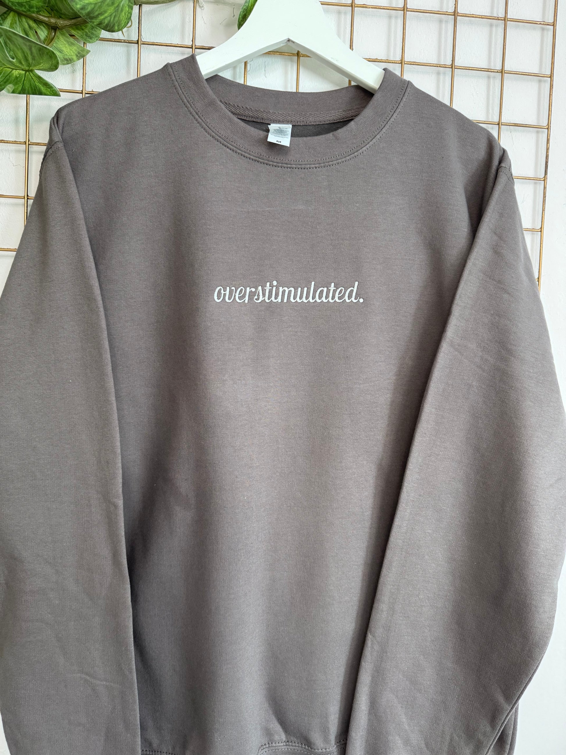 Whether you're lounging at home, running errands, or meeting friends, the "Overstimulated" Embroidered Sweatshirt is your go-to piece for effortless style and comfort. Its understated design makes it a wardrobe staple, while the embroidered detail adds an expressive, personal touch.