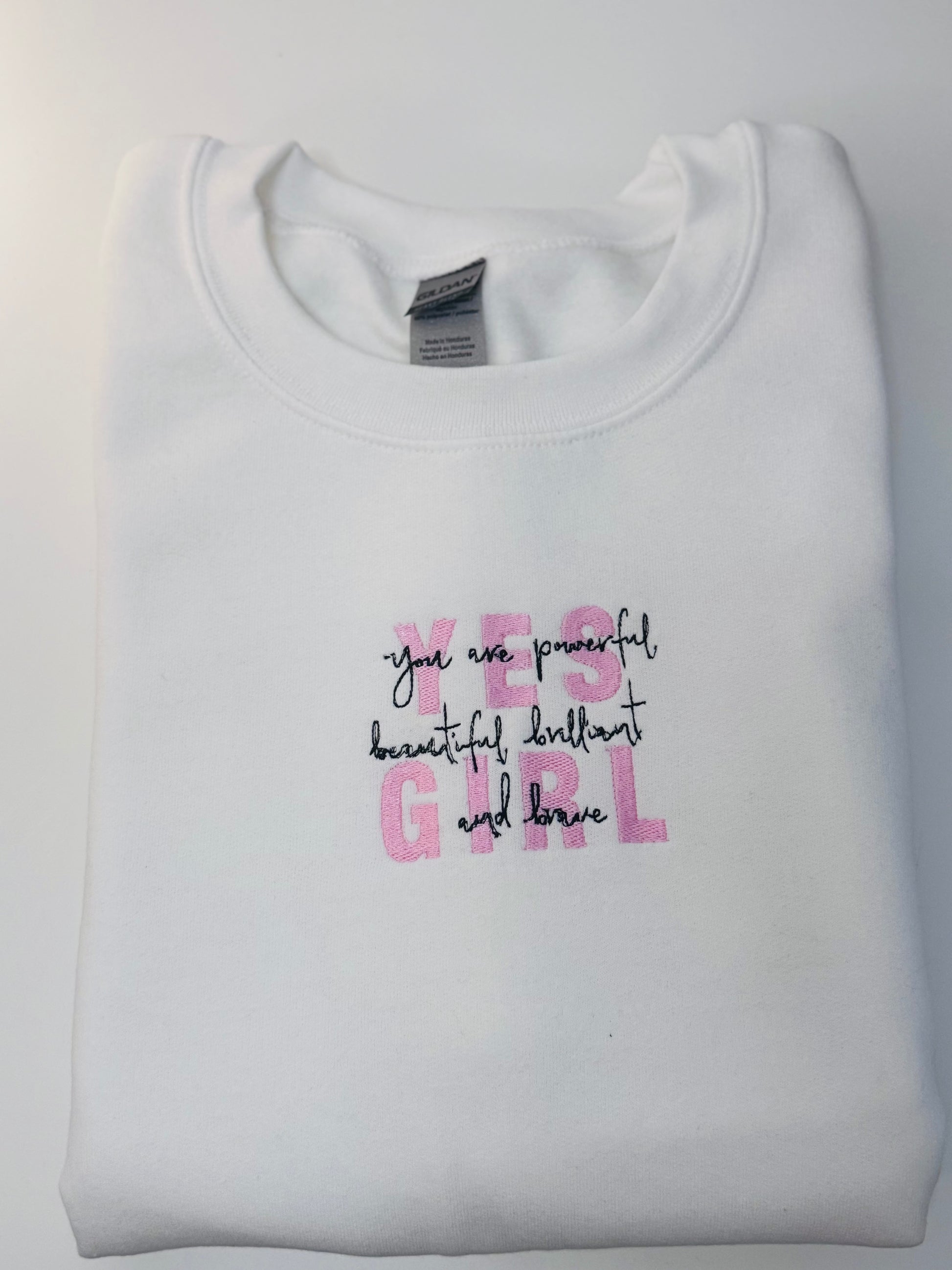 The "Yes Girl" Sweater Collection, a celebration of empowerment and self-love. This collection is designed to inspire and uplift, reminding every woman of her inherent strength and beauty. Each sweater is a cozy embrace of positivity, featuring the empowering mantra: "Yes girl, you are powerful, beautiful, brilliant, and brave."